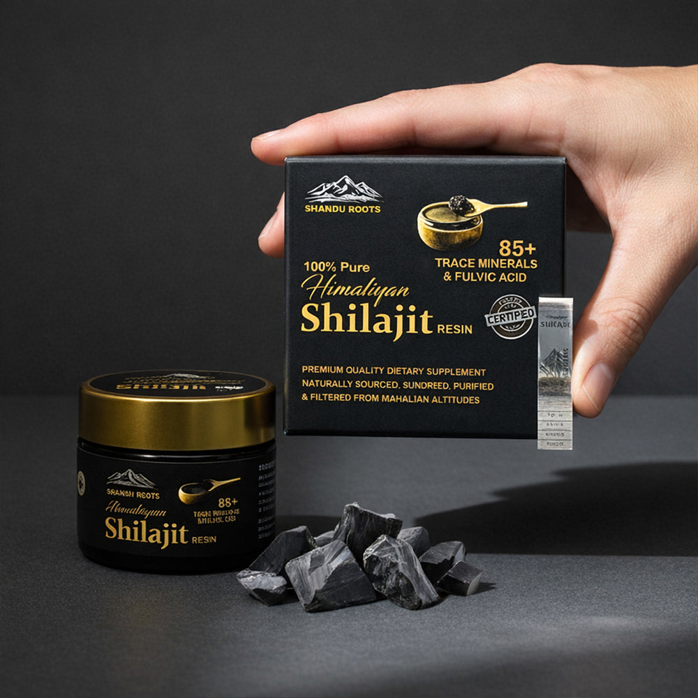 Why Skardu Roots? Our Shilajit is ethically sourced from the pristine mountains of Skardu at elevations above 16,000 feet, where it naturally seeps from ancient rock formations and is sun-dried in its pure form, preserving its mineral richness and authenticity, far away from pollution and industrial contamination.